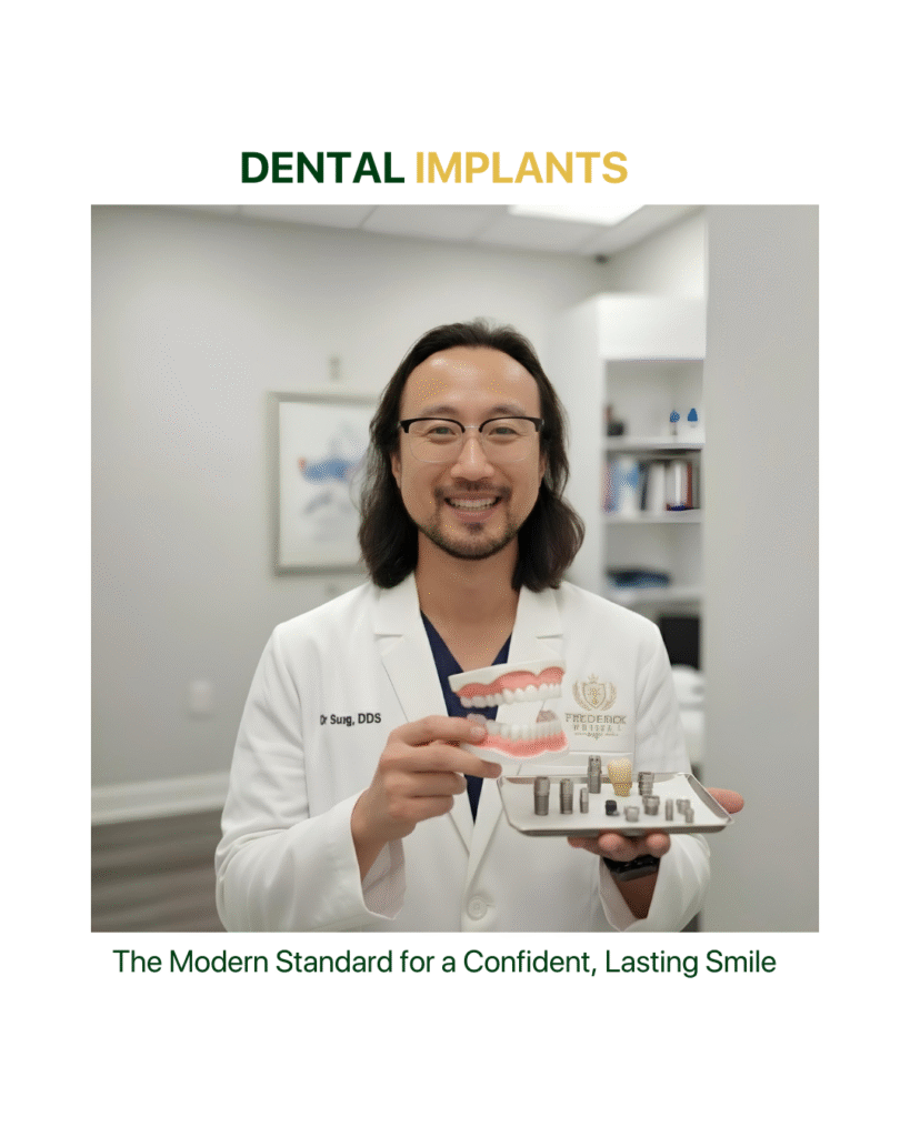 Patients have long had several dependable options for replacing missing teeth—including dentures and bridges. Today, dental implants provide an advanced, natural-feeling choice that supports both appearance and everyday function. At Frederick Prime Dental, implants are a trusted solution for those who want a restoration that feels close to a natural tooth while promoting long-term […]